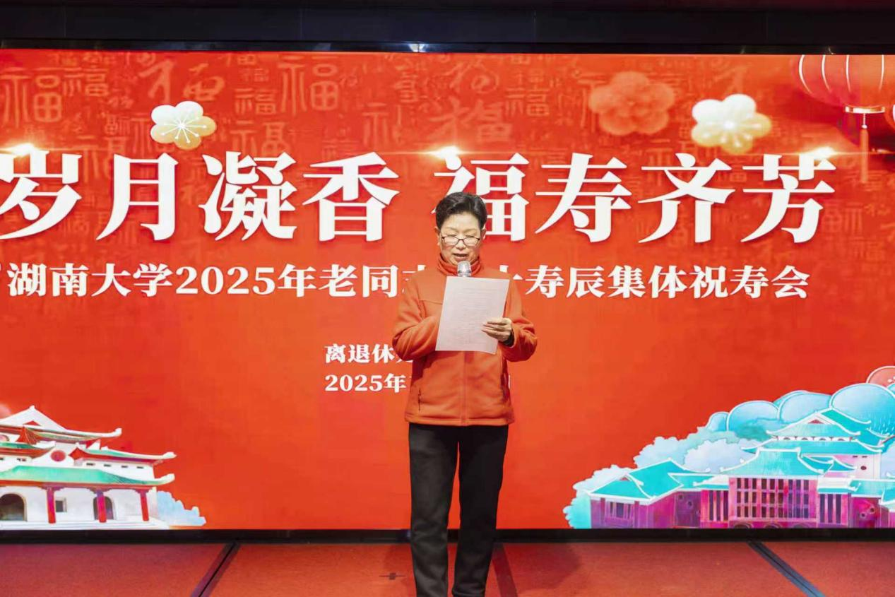 唐珍名代表学校党委向全体寿星送上生日祝福。他表示,老同志是学校事业发展的建设者、见证者和宝贵财富,学校将深入贯彻习近平总书记关于老龄工作的重要指示精神,持续营造尊老、敬老、爱老、助老的浓厚氛围,让离退休老师的获得感、幸福感、安全感更加充实、更有保障、更可持续。