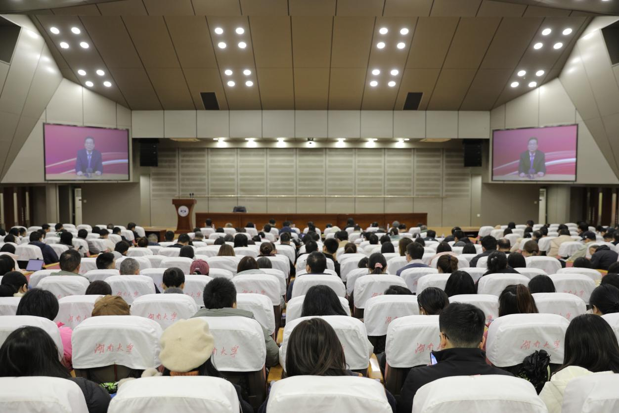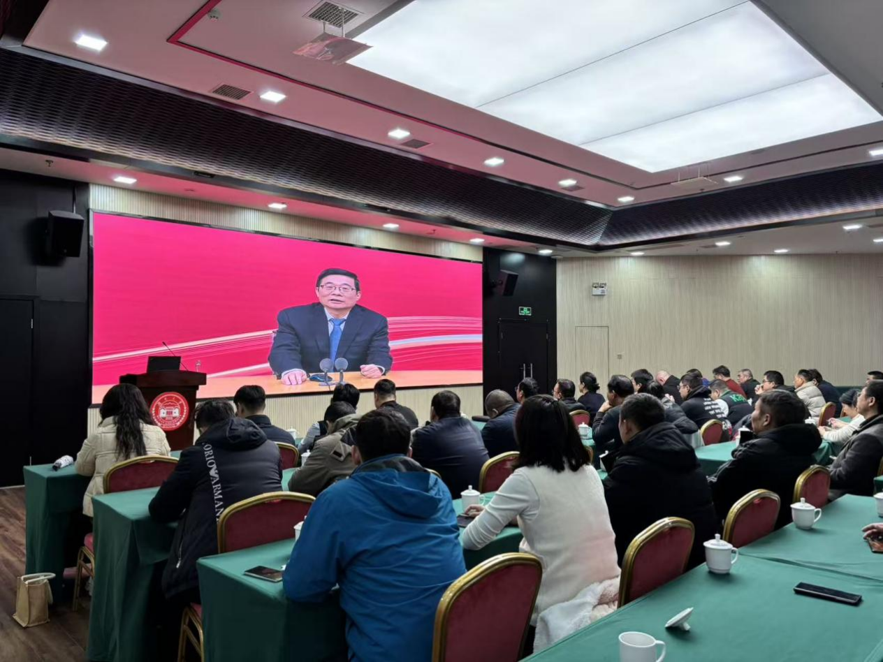 12月23日下午,学校举行2025年党员教育培训第三次集中大课,集中观看学习中央党校(国家行政学院)副校长(副院长)李毅教授讲授的“深入学习贯彻习近平文化思想”专题视频课程。校党委书记邓卫主持并讲话。全校共14824名师生党员分别在超算中心报告厅和逸夫楼报告厅2个主会场、91个分会场参加学习。