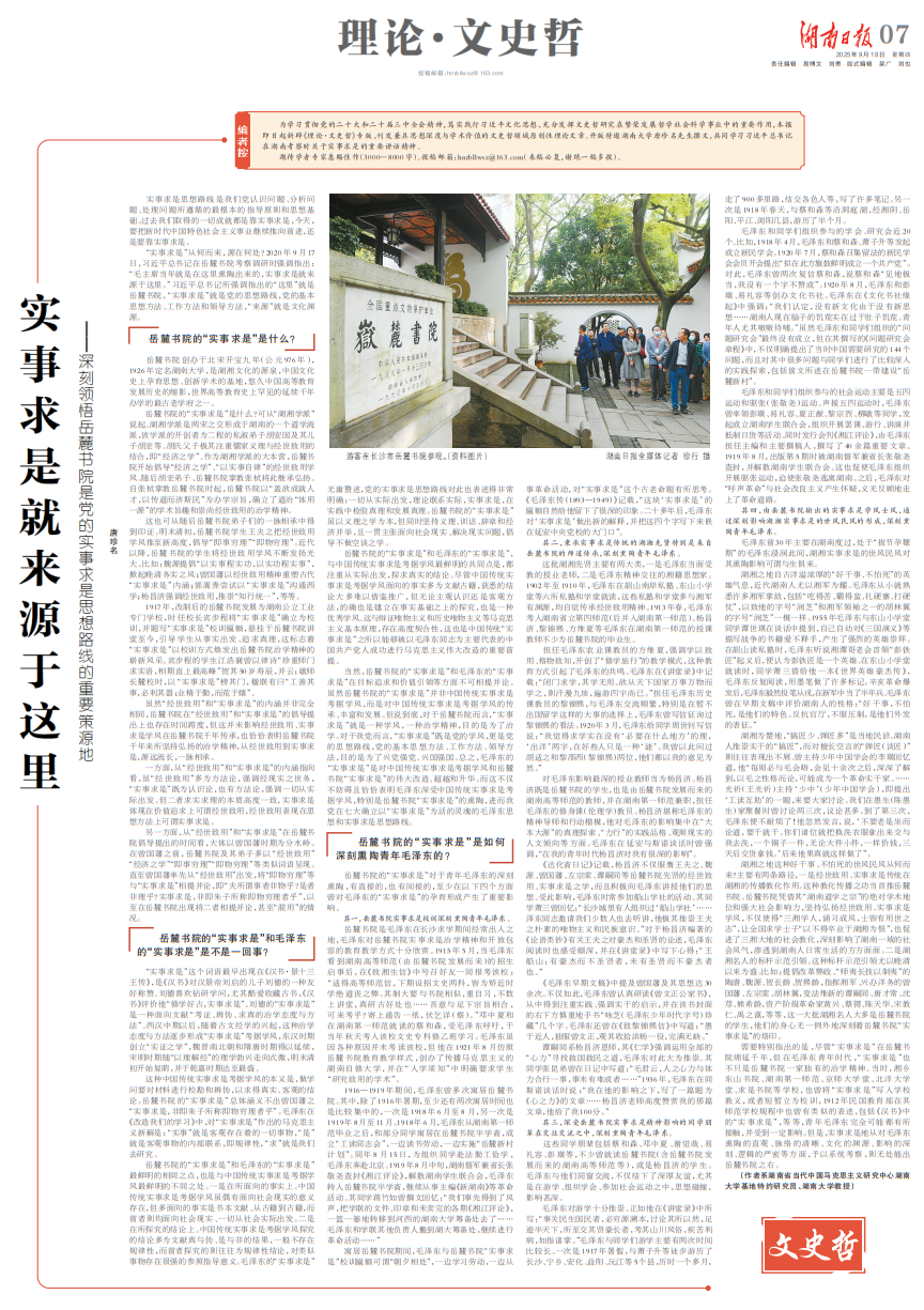 近日,经《湖南日报》自主申报、湖南省委宣传部审核推荐、中共中央宣传部集中评选,我校理论文章《实事求是就来源于这里——深刻领悟岳麓书院是党的实事求是思想路线的重要策源地》入选2025年度全国优秀理论宣传作品扶持计划,也是湖南省2025年度唯一入选的理论文章。该文由《湖南日报》整版刊载于2025年9月18日,系《湖南日报》“文史哲”理论专栏开栏首篇文章,作者系我校唐珍名研究员。该文紧紧围绕岳麓书院的“实事求是”是...